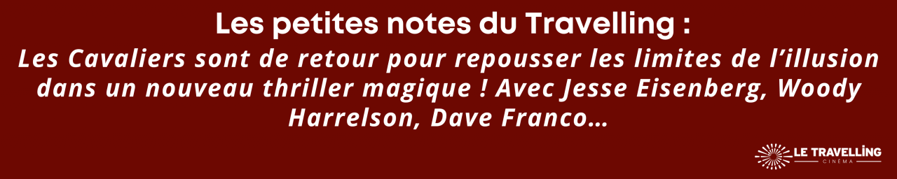 Les Cavaliers sont de retour pour le braquage le plus impressionnant jamais imaginé ! Accompagnés d'un groupe de jeunes magiciens qui espèrent suivre leur trace, ils vont devoir repousser les limites de l'illusion pour orchestrer leur tour le plus spectaculaire : dérober le joyau le plus précieux du monde des mains d'une redoutable organisation criminelle...